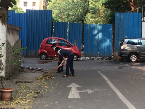 Scouts clean the school neighbourhood on Gandhi Jayanthi